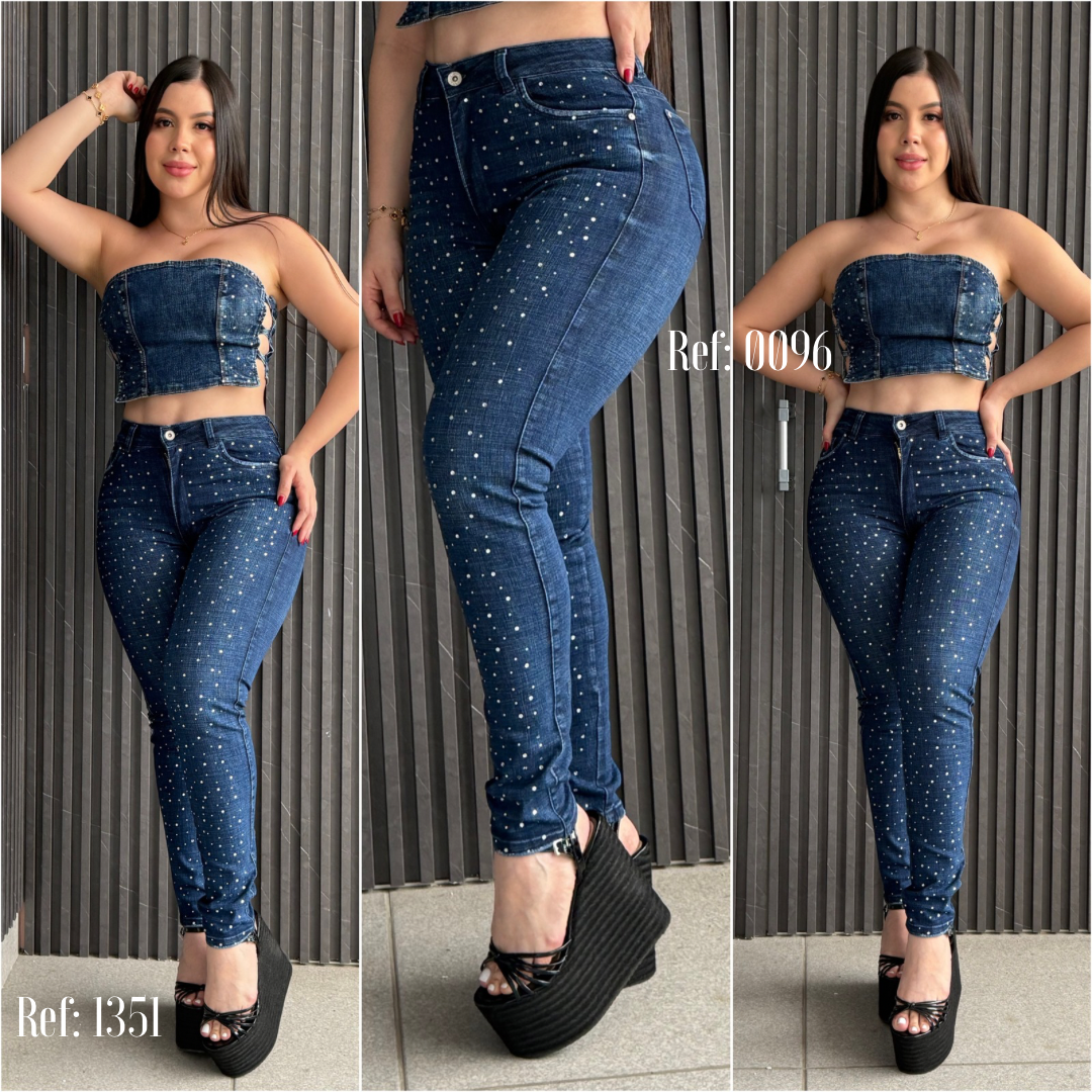 CONJUNTO EN DENIN CON PIEDRERIA REF: 1351 / 0096
